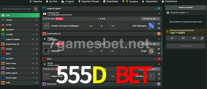 O 555D Bet oferece uma grande seleção de opções de apostas em e-sports com probabilidades competitivas